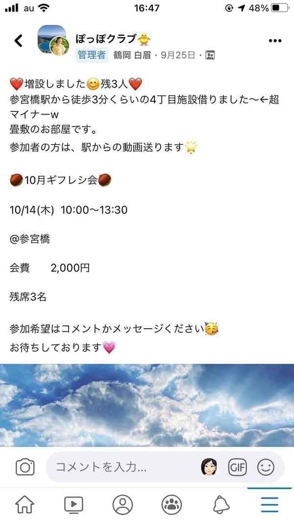※ギフレシ会の参加費は2,000円。参加条件は、有資格者(バーズ、ボディプロセス、フェイスリフト など)のみとなります。